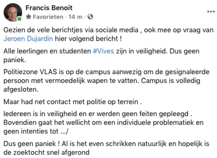 Vives gewapende man. 1 day agoVives-hogeschool ontruimd na melding gewapende man Telenet gaat woningen verhuren met gas water en elektriciteit inbegrepen. Die liep op straat ter hoogte van de VIVES-campus in Kortrijk.